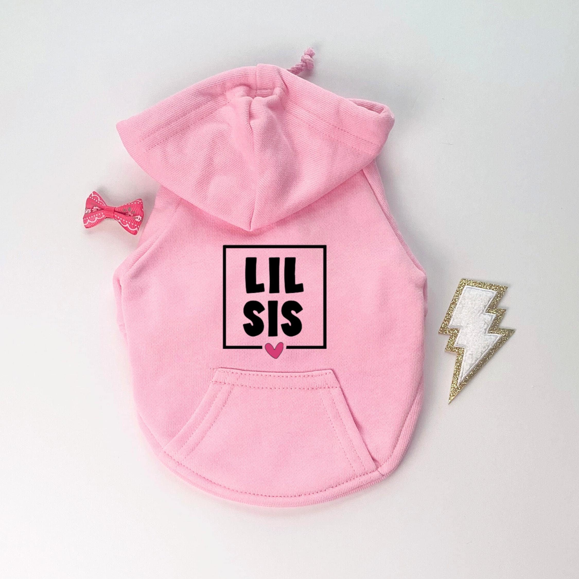 Lil Sis Dog Hoodie – Pink Pet Outfit for Your Furry Family Member